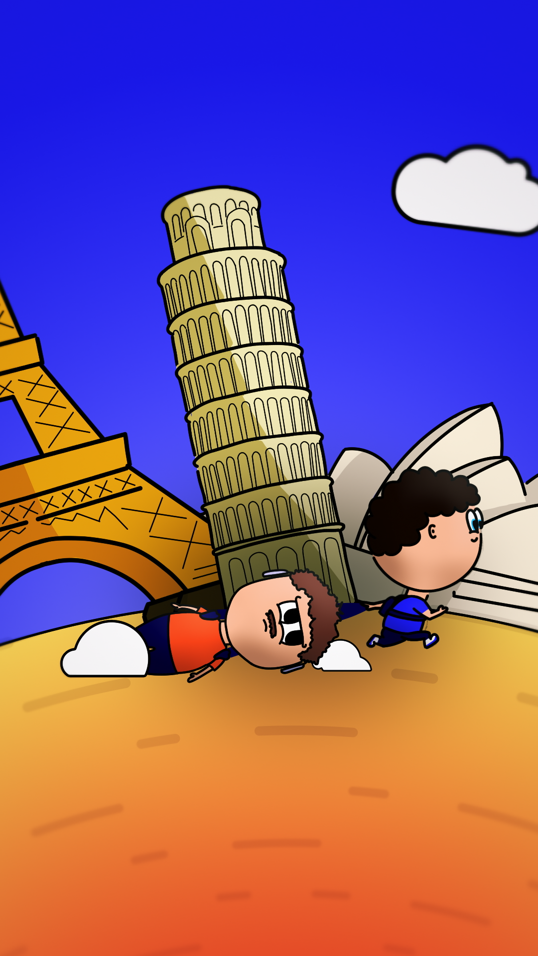 César Culture G (Cesar Roussel) and Valenaction (Valentin Descheres) are launching a short, vertical-format show where they explore cultural activities from around the world. Their need? An intro that sums up, in just a few seconds, both the diversity of the activities they’ll discover and the offbeat tone of the program.